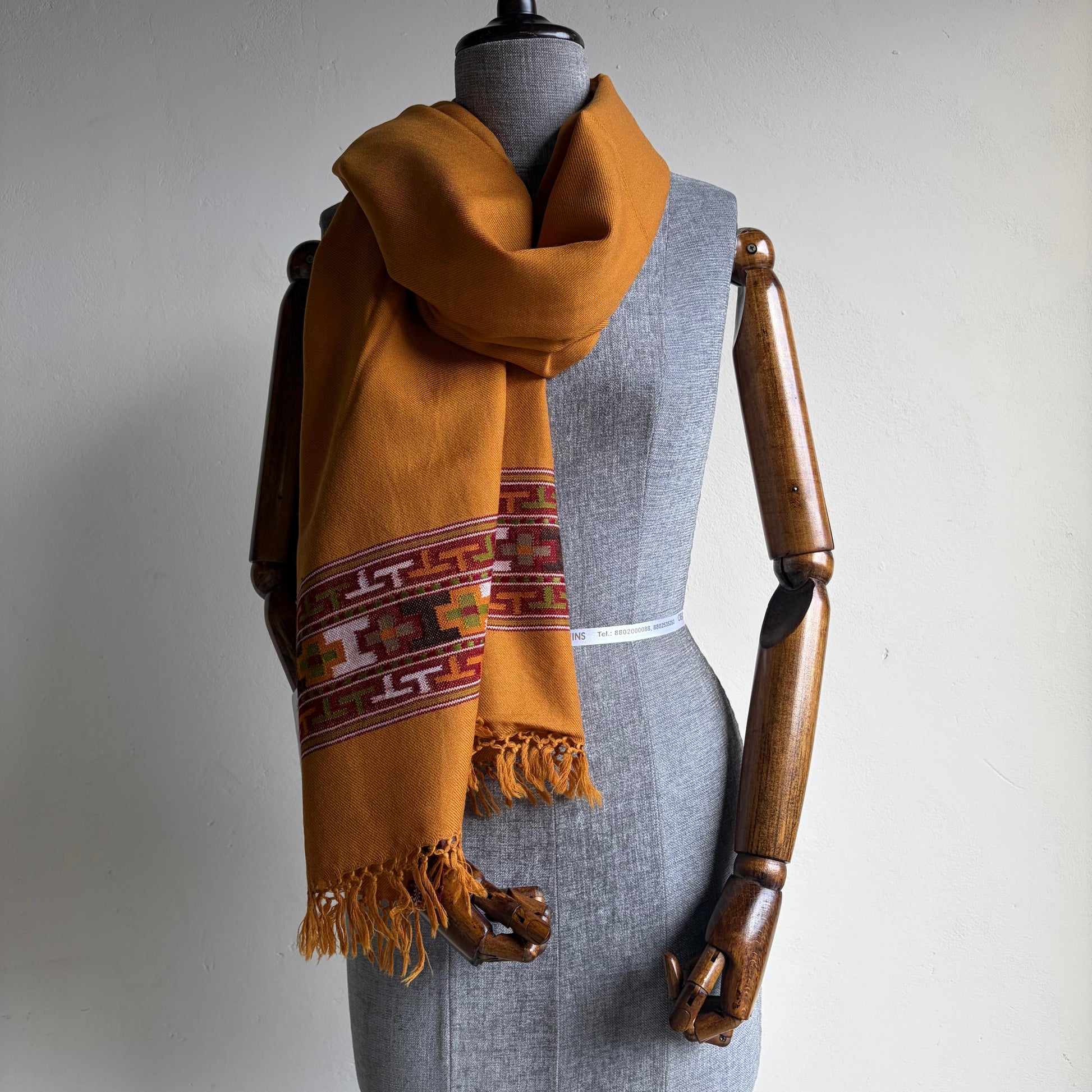 Hand Woven Pure Merino Wool Kullu Stole Mustard
