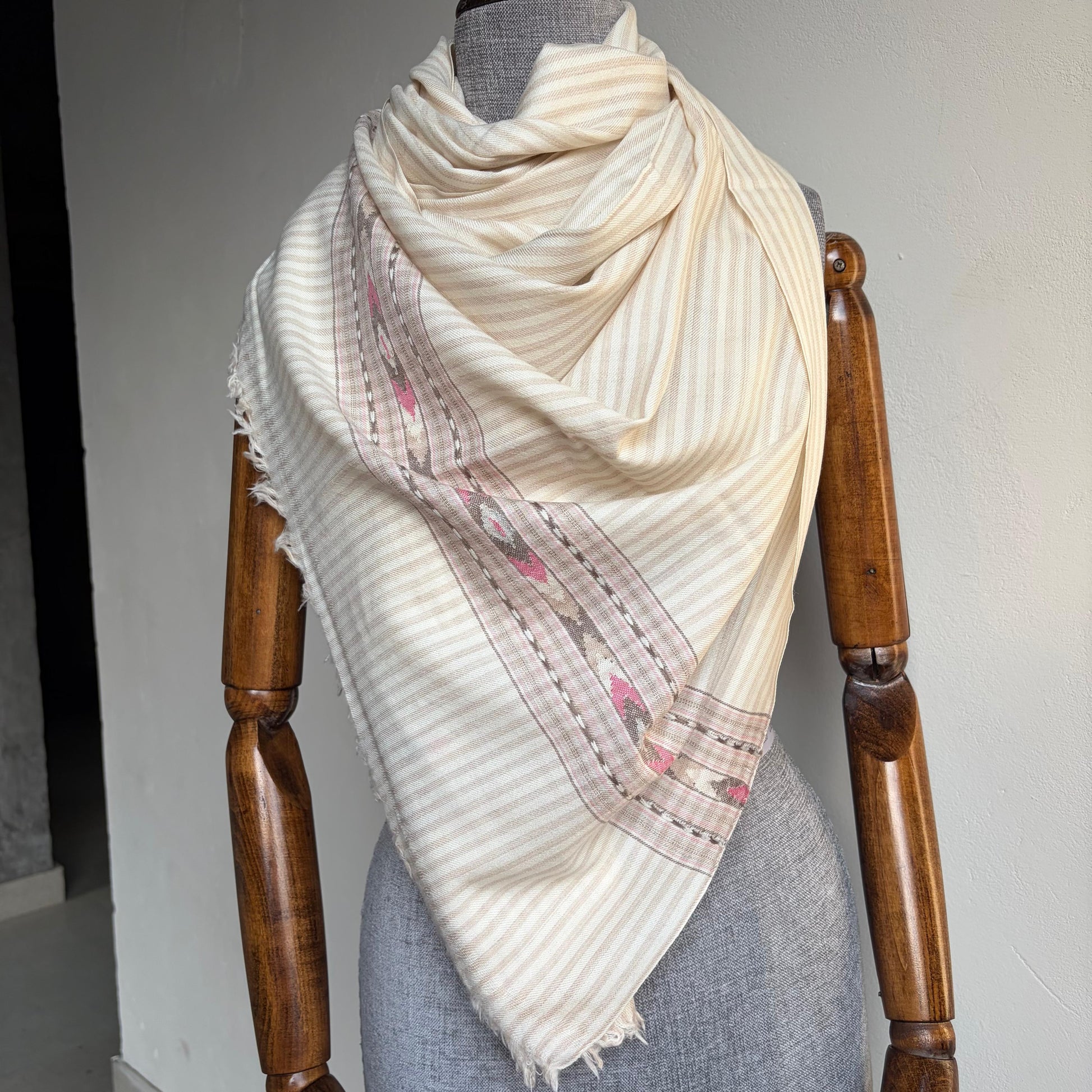 Handloom Pure Merino Wool Stole (off white and beige)