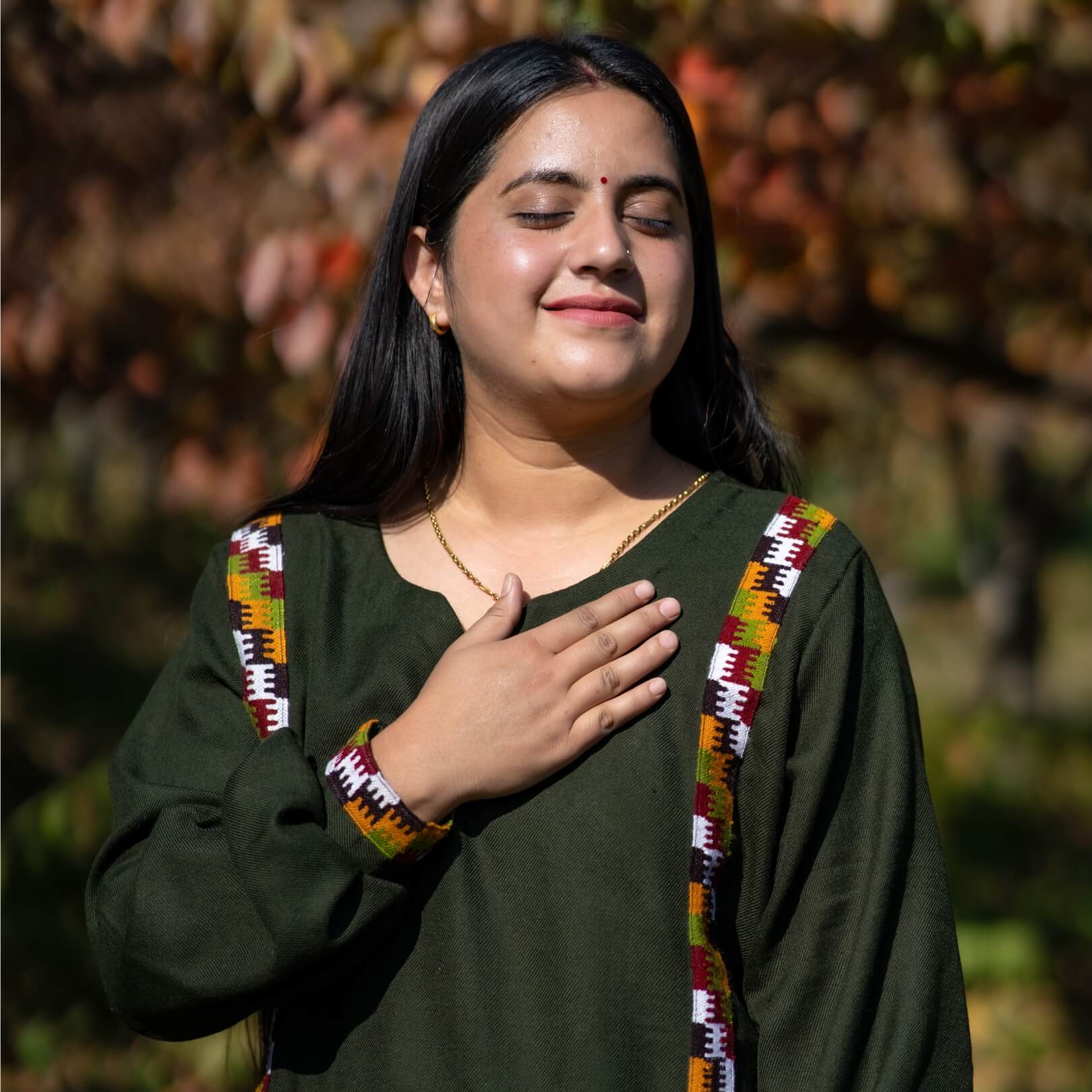Our women’s merino wool co-ord set in olive green color is thoughtfully handcrafted using 100% pure merino wool (except Kullu Patti- made from cashmilon) to offer superior softness, warmth, and breathability for winter wear. Designed for comfort without compromising on style, this co-ord set is perfect for daily outings, relaxed travel looks, work-from-home days, or cozy evenings.