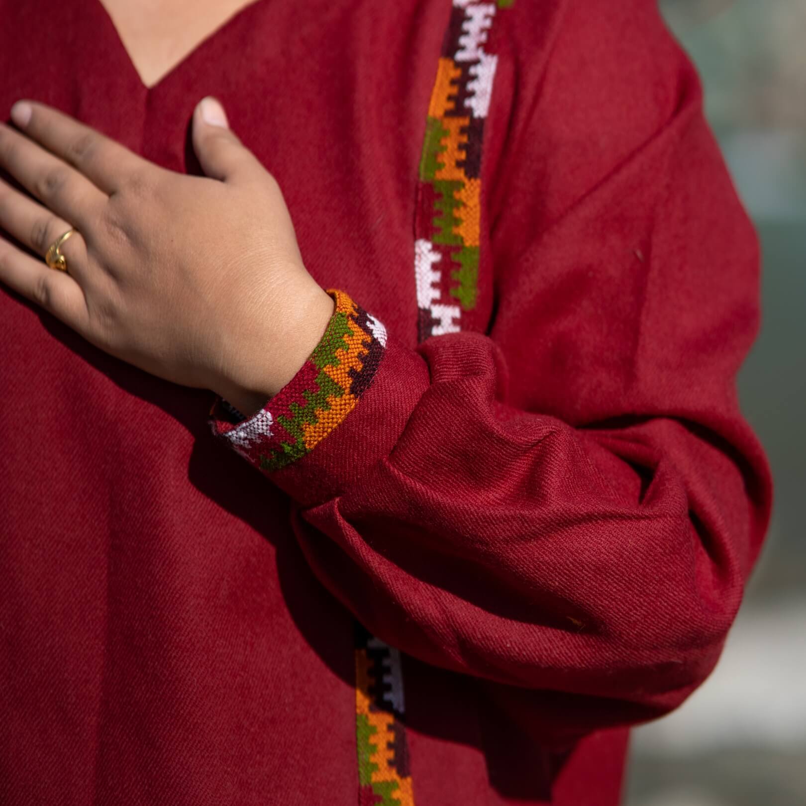 Merino Wool Co-ord Set for Women (Red with kangha Design Patti)