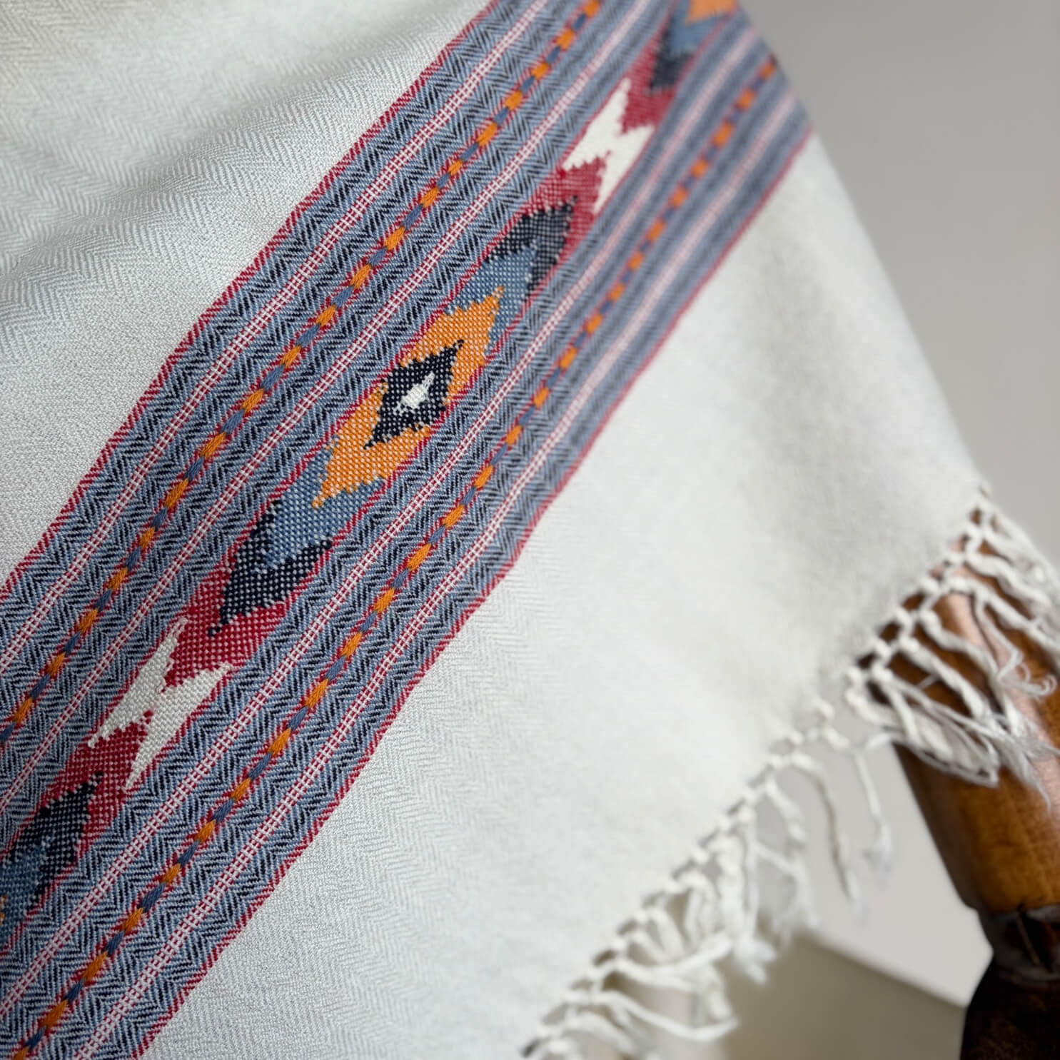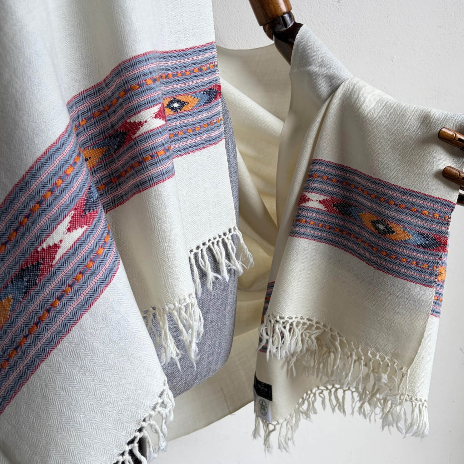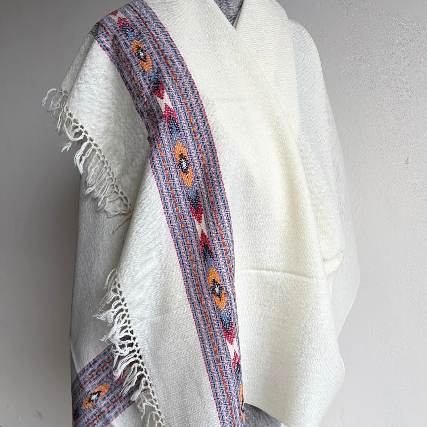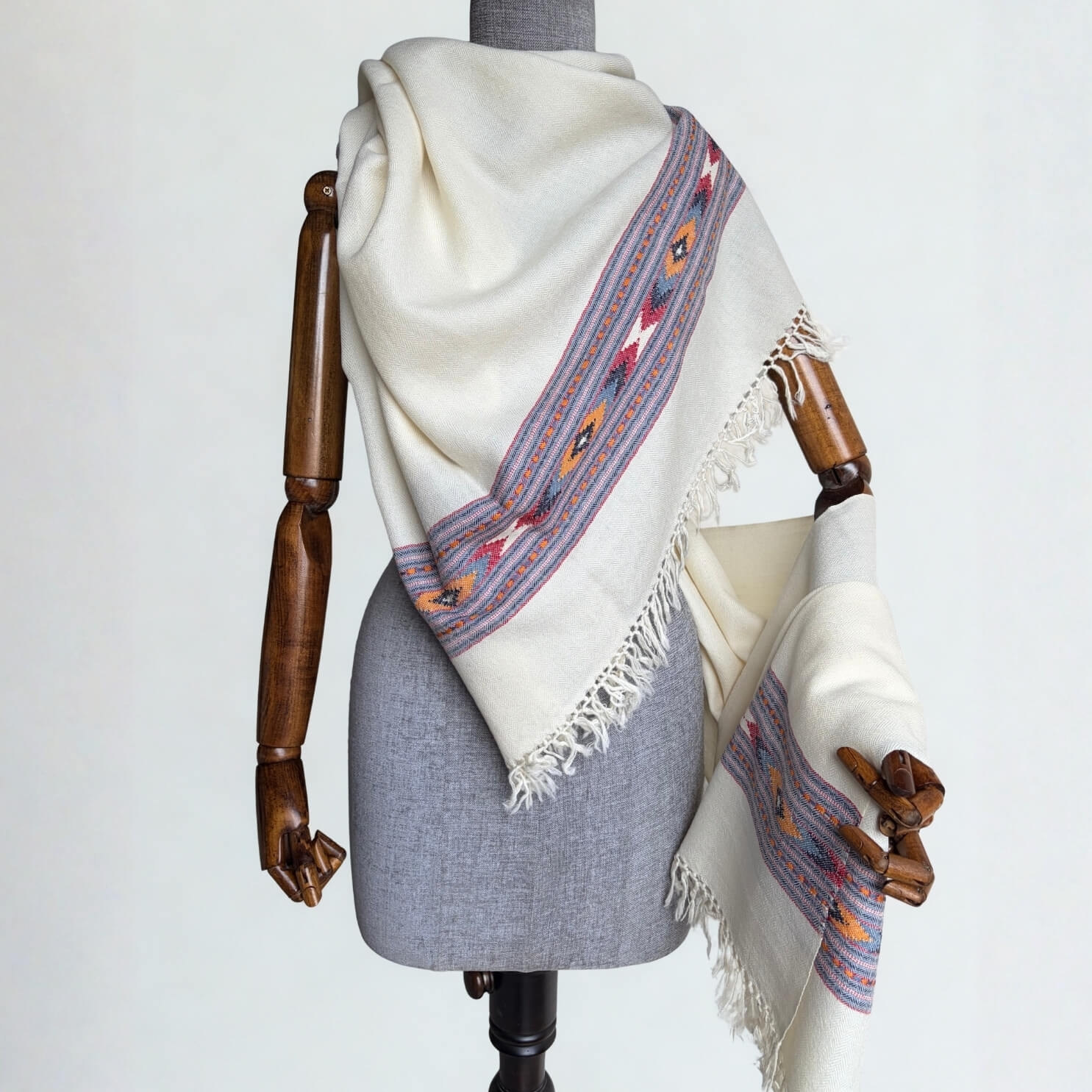Pure Merino Wool Kullu Shawl White | Handwoven