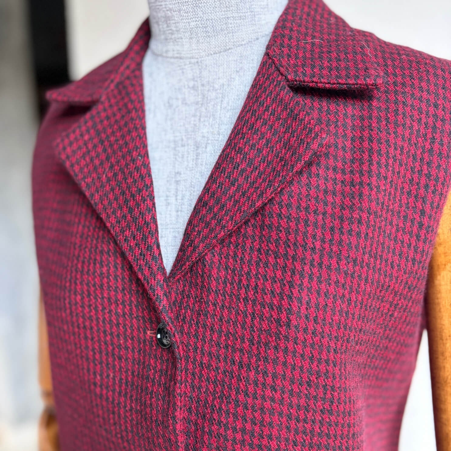 The rich maroon shade paired with the classic houndstooth pattern creates a timeless, sophisticated look suitable for festive occasions, office wear, travel, and everyday styling. Designed in the iconic Nehru silhouette, this jacket showcases the heritage of Himachali craftsmanship while delivering modern comfort and versatility.